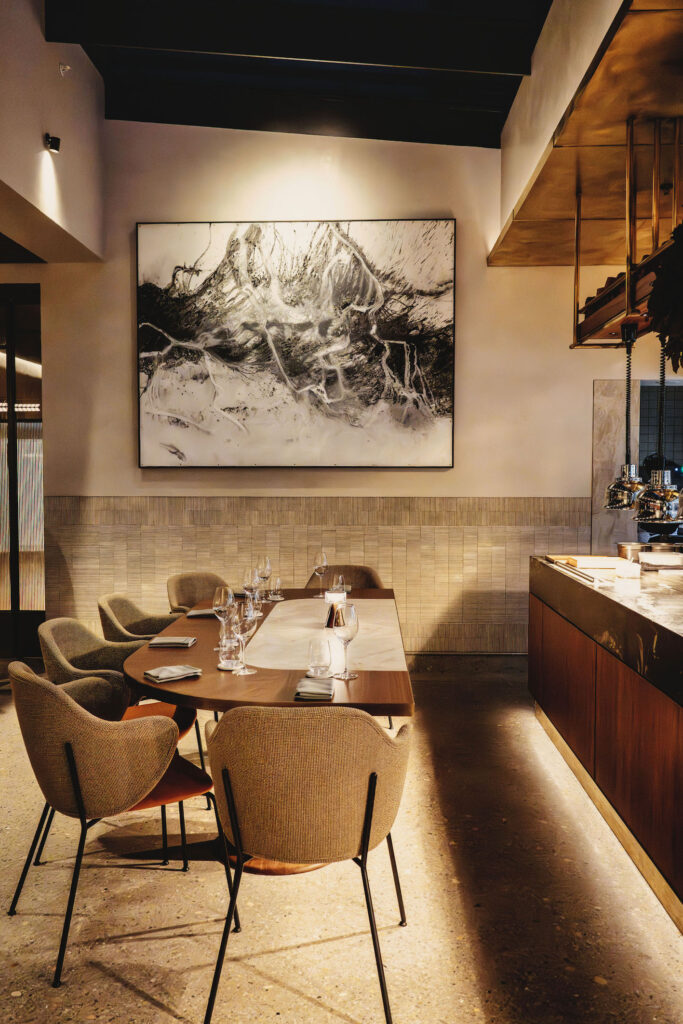 From the moment you enter, the mood is set. The interior feels calm and assured: white, clean-lined furniture softened by colourful paintings bringing warmth and energy to the room. Jazz hums quietly through the speakers, creating rhythm rather than distraction. The room holds just enough guests to feel alive, yet never noisy. Conversation flows easily, and attention remains firmly on the plate.