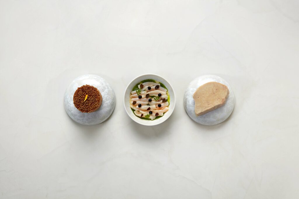 In a city celebrated for its vivid energy, the Michelin-starred Born takes a different approach, offering calm poetry with an emphasis on the circle of life. The restaurant is located in a historic neo-colonial building in Singapore’s Chinatown, and the setting establishes this mood immediately. The interior is clean and composed, guided by a Nordic sensibility. Pale woods, soft lines, and dimmed lighting create a both calm and focused atmosphere, encouraging attention without distraction. It feels serene, almost meditative, yet never austere. A large paper sculpture suspended from the ceiling softens the room into something pure and contemplative.