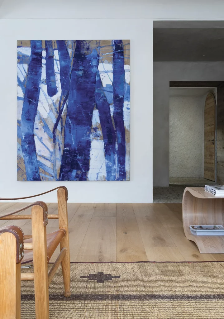 To let the architecture and the built-in elements shine, Bozzi de Brabant was relatively sparing when it came to furnishings and objects. She actually considers the interior walls one of the most artistic parts of the entire home: Lusciously painted walls are another Engadin signature, and she hired a Portuguese artist, rather than a housepainter, to complete the rich, textured expanses. “I always say that I paid more for the internal painting than the rest of the house,” she says with a laugh. Accordingly, she didn’t over-adorn the surfaces with art. “I paid a lot for the walls—I want to see them!”