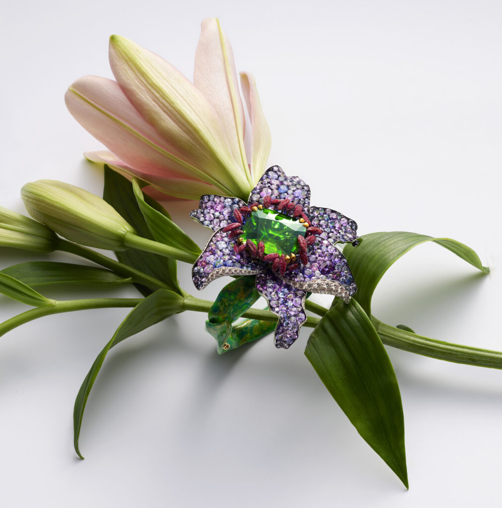 Strong’s colorful red carpet look is about as far away as his Succession character Kendall Roy would dress at a major society event—and so was the spirited watch he paired with it. Richard Mille’s candy-colored RM 07-04 comes in a number of color combinations, but the green shade of this ceramic dial matches Strong’s ruffled shirt perfectly.